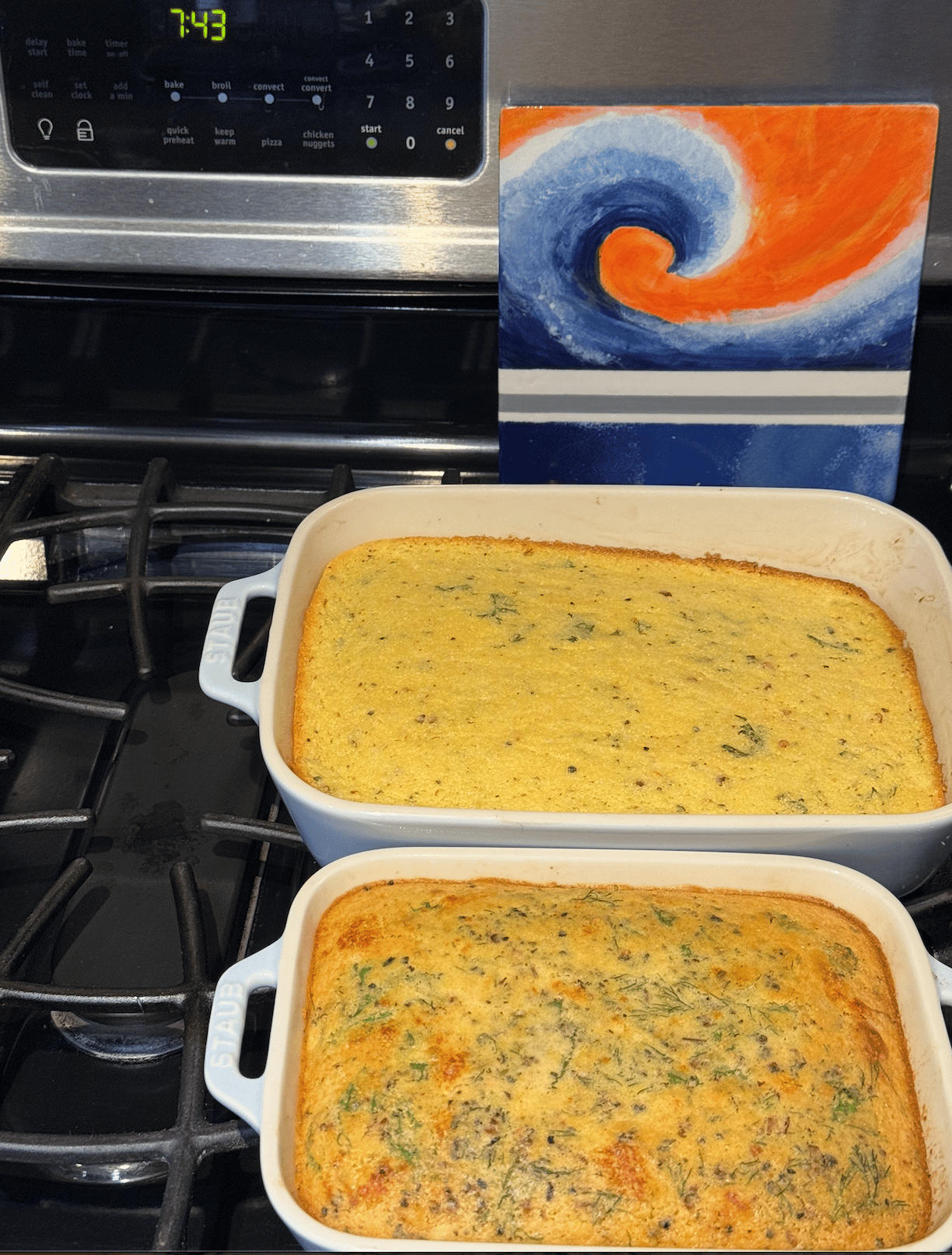 Pour wet ingredients into the bowl of dry ingredients + any additional ingredients (herbs/ spices), fold with a spatula to combine; don't overmix. Lumps are okay